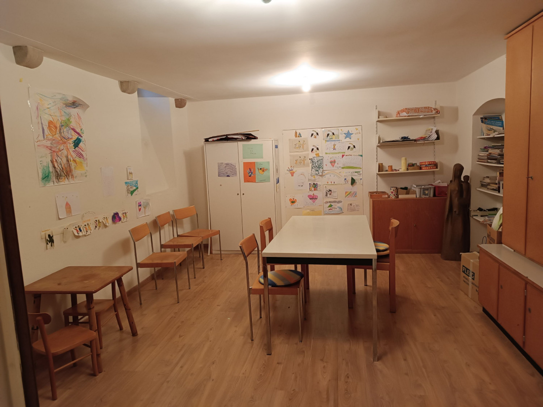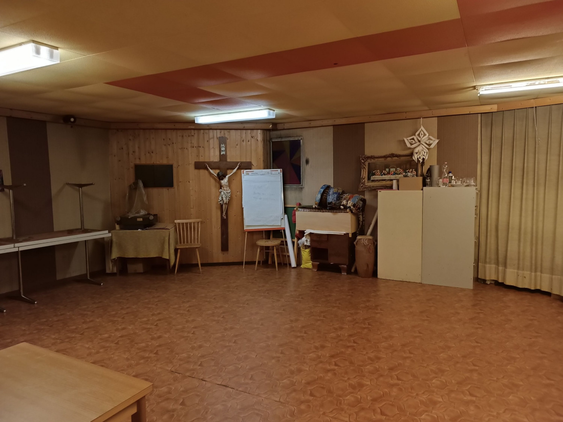 l'Eglise du Sacré-Coeur à la Feierabendstrasse 68Entrée des sallesl'Eglise vue de la BurgunderstrasseEglise vue de la tribuneVue depuis la tribuneVitrail de la tribune, Lumen ChristiCélébration de la Pâques devant l'autelVue depuis le tabernaclePiéta - Œuvre sculptée en bois de tilleul d’un artiste inconnu italien du 17ème siècleVitrail du Buisson Ardent, symbole du Sacré-CoeurLa statut du Christ - Statue en bronze, œuvre de l’artiste jurassien Georges Schneider, 1955-57